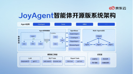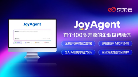 行业首个100%开源企业级智能体,京东云让Agent应用更简单发表时间:2025-07-27 09:51 近日,京东云正式开源JoyAgent智能体。作为行业首个100%开源的企业级智能体,实现了产品级开源,包括前端、后端、框架、引擎和核心子智能体。开源产品历经京东内部大规模场景锤炼,与平台完全解耦,用户可以本地独立部署。基于高完成度的多智能体协同能力,打通AI落地最后一公里,帮助企业快速将智能体在生产场景用起来。